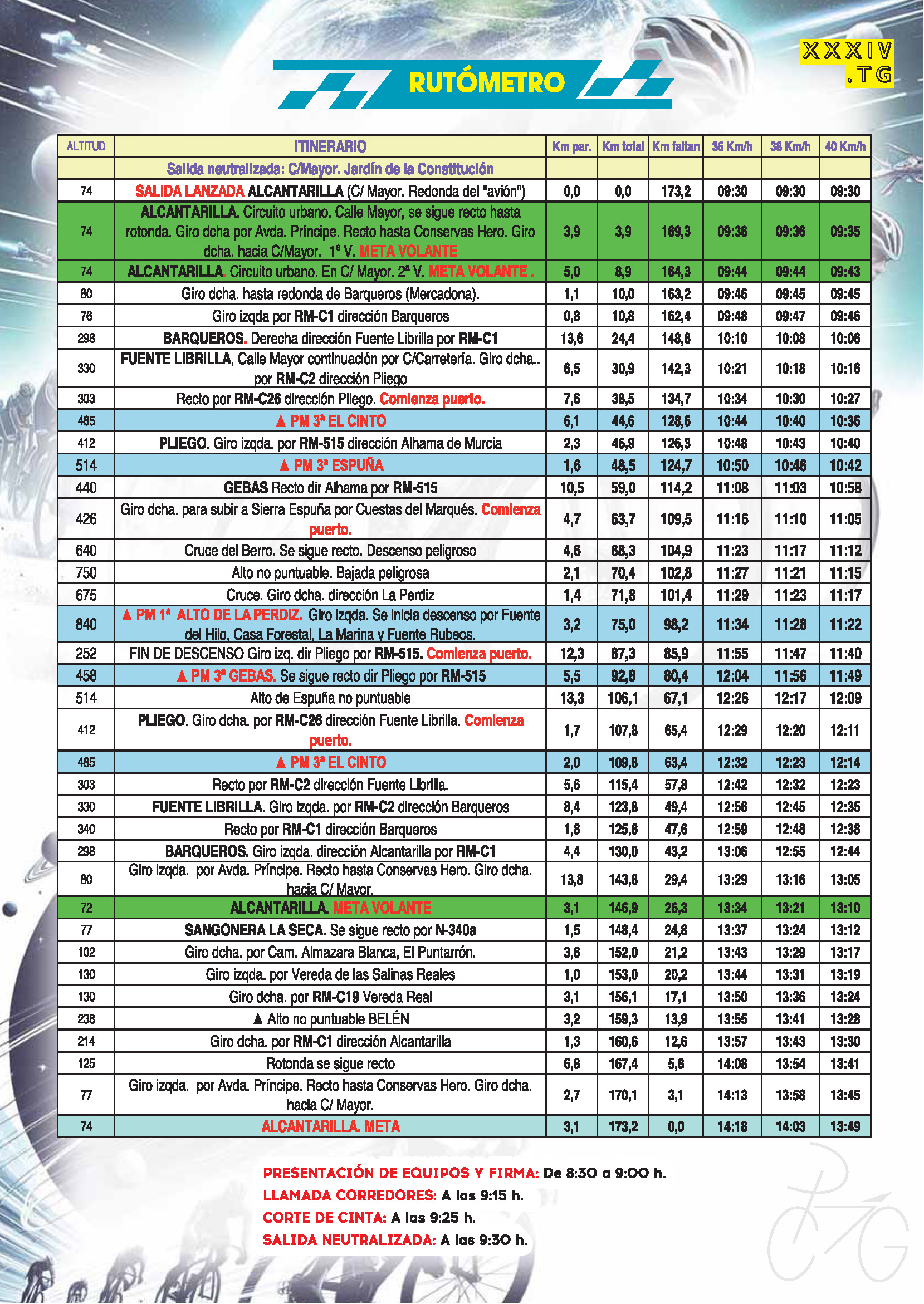 1ª Etapa (ALCANTARILLA - ALCANTARILLA) 173.00 Km