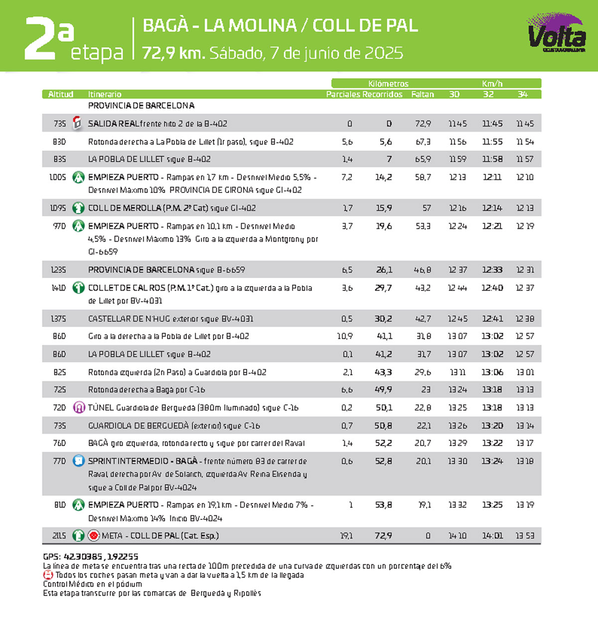2ª Etapa (BAGA - LA MOLIA (COLL DE PAL)) 72.90 Km